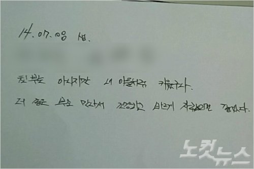 아이를 품에서 내려놓은 A씨는 조 부목사에게 조심스럽게 쪽지 한 장을 내밀었다.