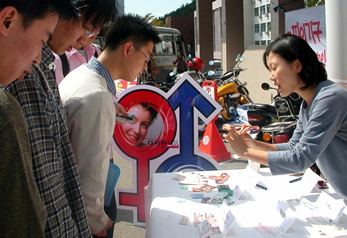 한 대학에서 이뤄진 피임캠페인에서 대학생들이 전시된 피임기구 등을 살펴보고 있다 |