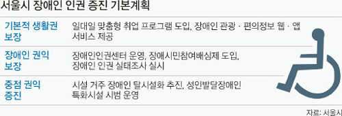 또 변호사가 상근하는 인권센터가 문을 열고 장애인 인권 침해 사건에 장애시민참여배심원제가 도입된다. 서울시는 12일 이러한 내용을 아우르는 ‘장애인 인권 증진 기본계획’을 발표했다.